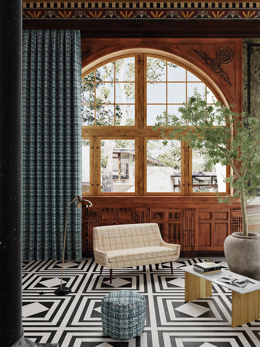 經(jīng)典的棋盤格紋、千鳥格紋、或是大牌編織感,千百薈設(shè)計(jì)師應(yīng)用各種色彩、形狀組合演變,造就了繁多的設(shè)計(jì)面料,適用于家居整體軟裝。
