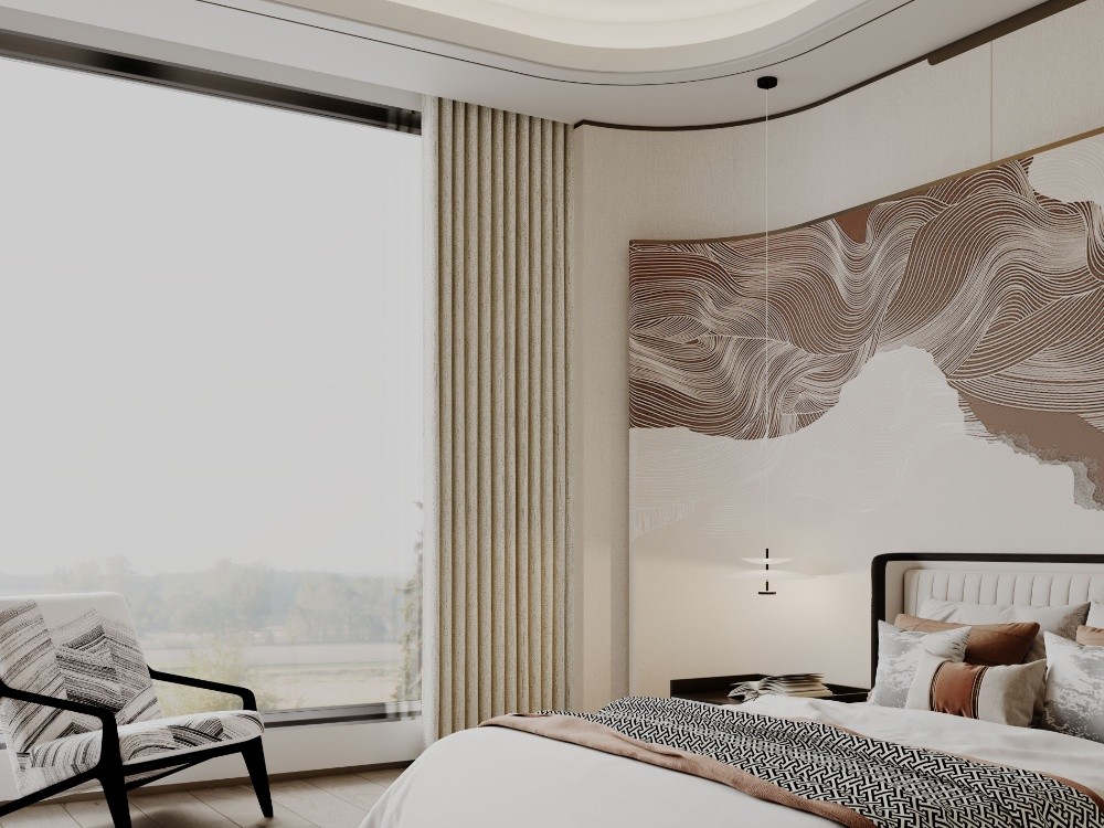 若是硬裝上采用了國風的風格裝飾,軟裝上則不宜過于繁復。采用同色系小肌理的面料,或是同系列紋樣加重重點,給空間以層次。