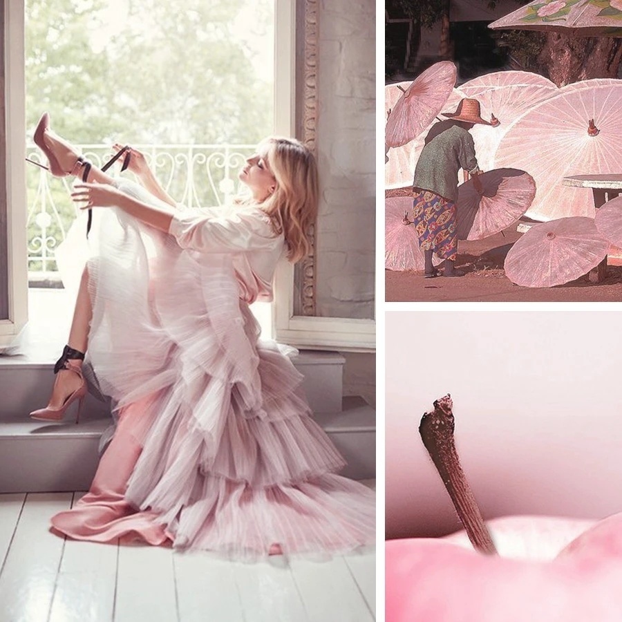 淡粉色最近也加快了流行的步伐,更淺更柔和的淡粉色甚至被當(dāng)成一種中性色調(diào)在用。粉色系溫柔大方,包容性強,能很好地同其他色彩構(gòu)成和諧的搭配。