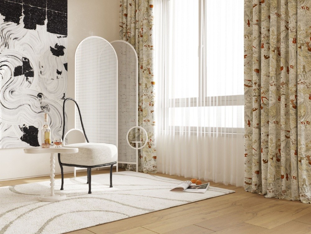 當(dāng)硬裝采用比較百搭的基礎(chǔ)色系,這時(shí)的軟裝就可以適當(dāng)應(yīng)用一點(diǎn)黃色,如單椅、沙發(fā)、抱枕,或者是大面積的布藝窗簾。給空間亮點(diǎn),又富有層次感。